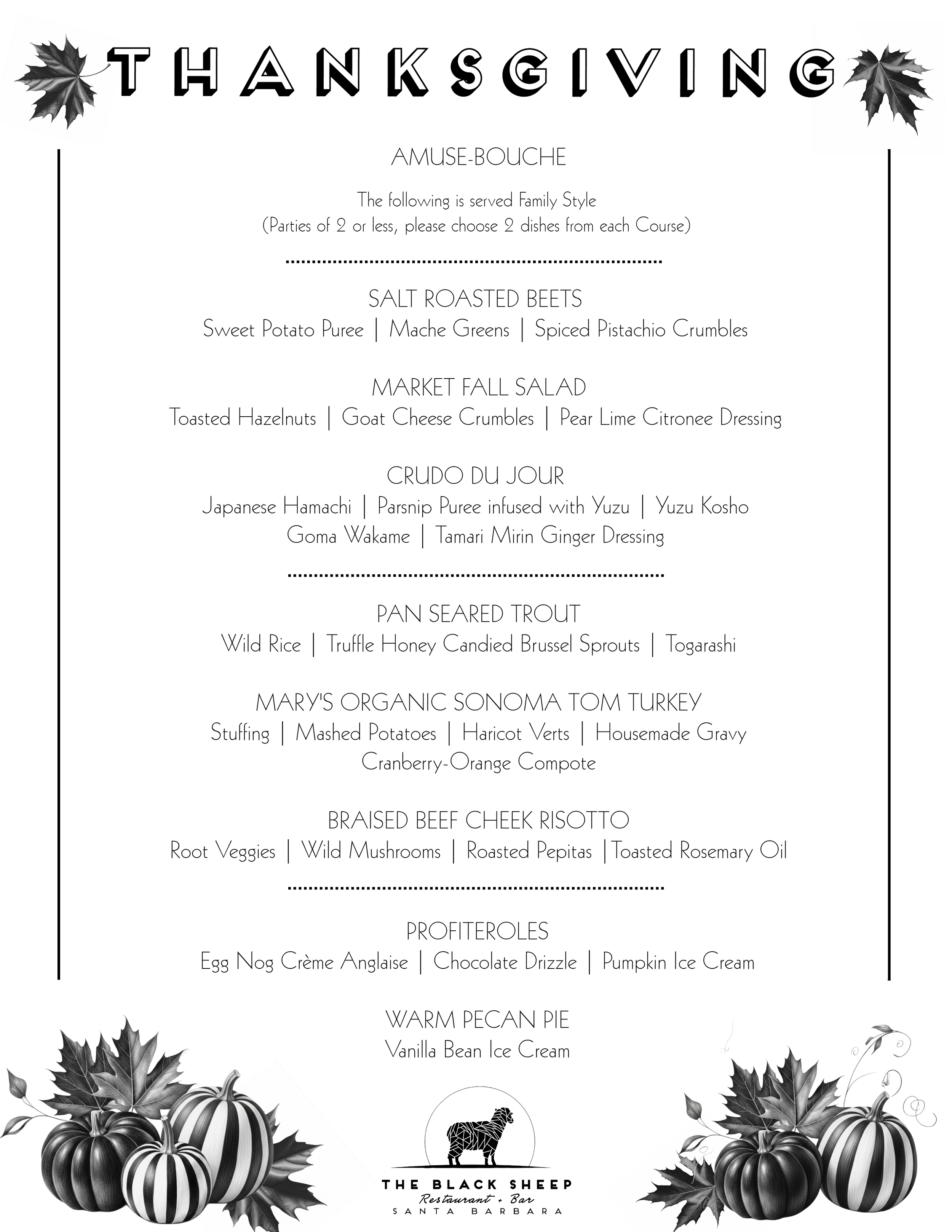 “My sister and I went to The Black Sheep for Thanksgiving and we couldn’t be happier that we did. The restaurant was full and busy all night but well managed. They offered both traditional and non-traditional Thanksgiving fare.”